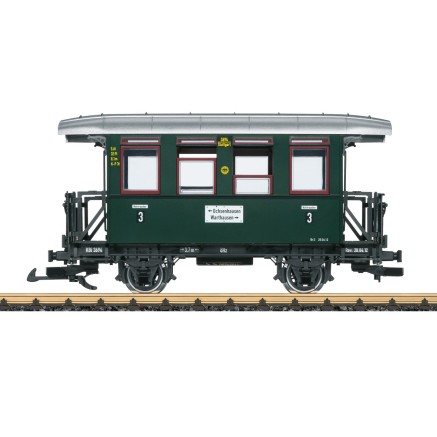 Passend zur Dampflokomotive erscheinen zwei Personenwagen der Museumsbahn mit unterschiedlichen Betriebsnummern.
