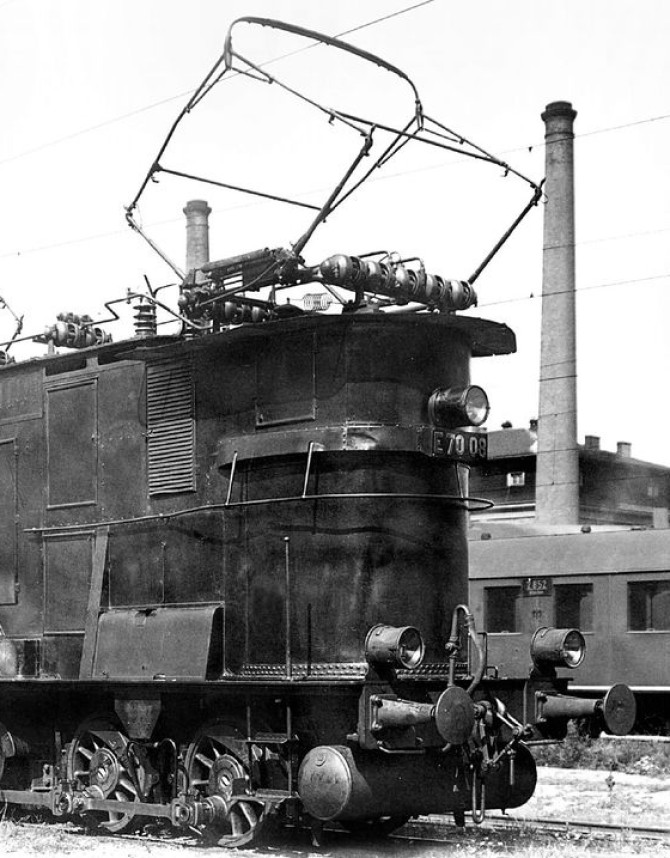 Die E 70 08 steht 1927 mit ihrem neuen Lokschild im BW München. ® Rudolf Kallmünzer/ Slg. Eisenbahnstiftung