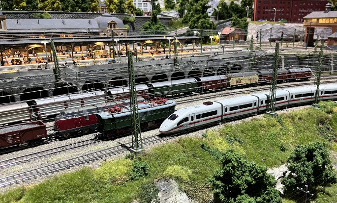Es ist ein großer Spaß, wenn der kleine my world ICE auf Papas Anlage mit den Zügen um die Wette fahren kann.